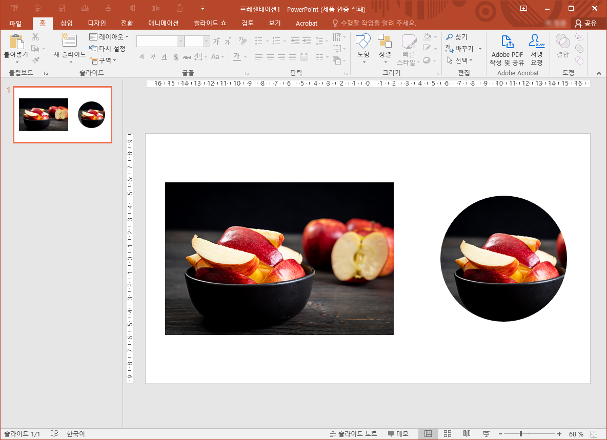 파워포인트에서 이미지를 원형으로 자를 때 원하는 부분만 자르는 방법입니다.