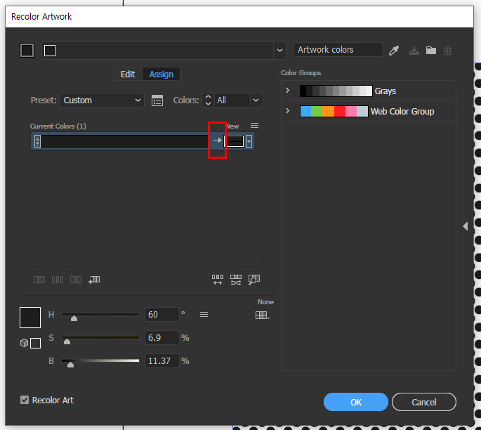Recolor Artwork 창이 나오면 가장 먼저 해야 할 것이