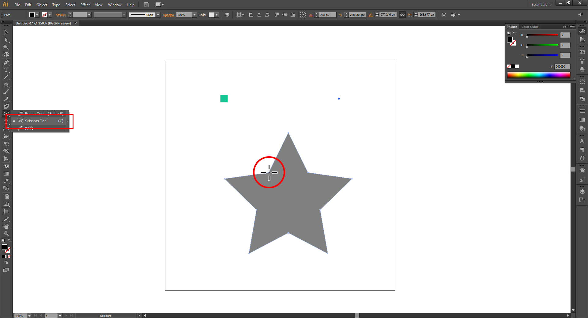 Scissors Tool 을 사용하여 별보양의 한 점을 '연결해제' 하는 것입니다.