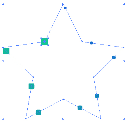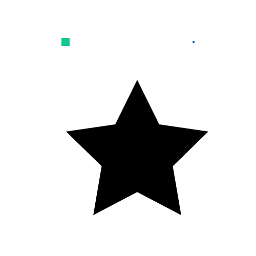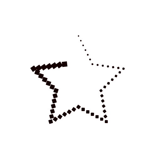 큰 사각형이 별 모양의 테두리를 따라서 작은 원형으로 모양을 바꾸게 되는 이미지 입니다.