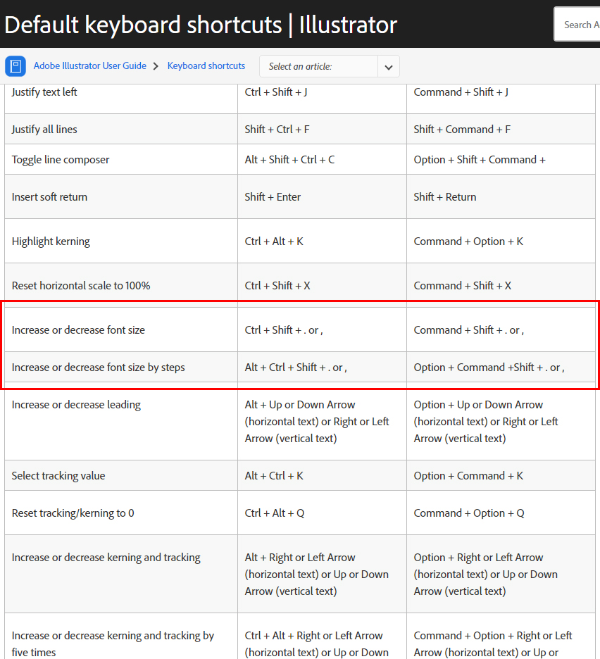 일러스트레이터 단축키는 helpx.adobe.com 에서 확인할 수 있듯