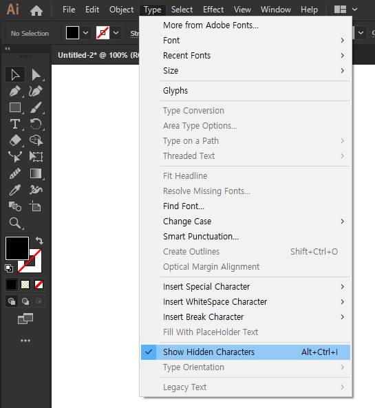 일러스트레이터에서 Type Tool 로 텍스트 입력시 #기호가 자동으로 생길 때 없애는 방법입니다.